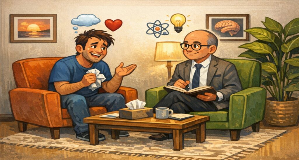 בכתבה זו נפגוש את "מר רגשי", המייצג את הצד החווייתי, ואת "מר מומחי", שמביא עמו ידע מקצועי ומדעי. יחד הם יפתחו לנו את הדלת אל עולם ההקשבה , דרך דיאלוגים, דוגמאות מחיי היומיום ושאלות המזמינות לחשוב מחדש על היחסים שבין שמיעה להקשבה.